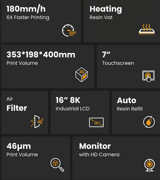 ApexMaker X1 3D Printer, Industrial Grade 3D Printer, 8K Resin 3D Printer with 16’’ 8K Resolution Mono LCD Screen, 353.2x198.7x400mm Large Size Printing Volume